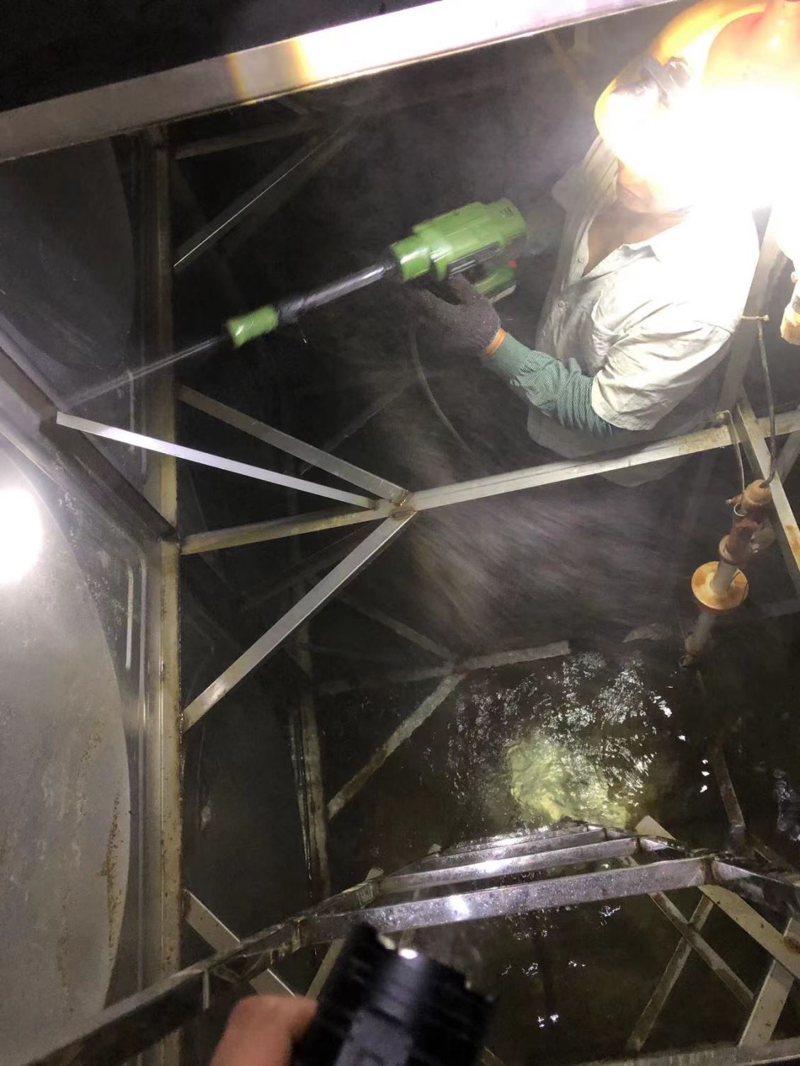 生活自贡水箱清洗三、专业的清除方式,这种方式在清除不锈钢水箱污垢时不需要将其拆卸,而且还能在不停止的情况下持续清洁,可以直接的将专用去垢的清洁剂倒入在水箱内部,先让其浸泡一段时间之后,大概是20-30分钟左右,直接的将水箱的内部除垢的系统打开进行外排,再使用清水频繁的冲洗就可以了。